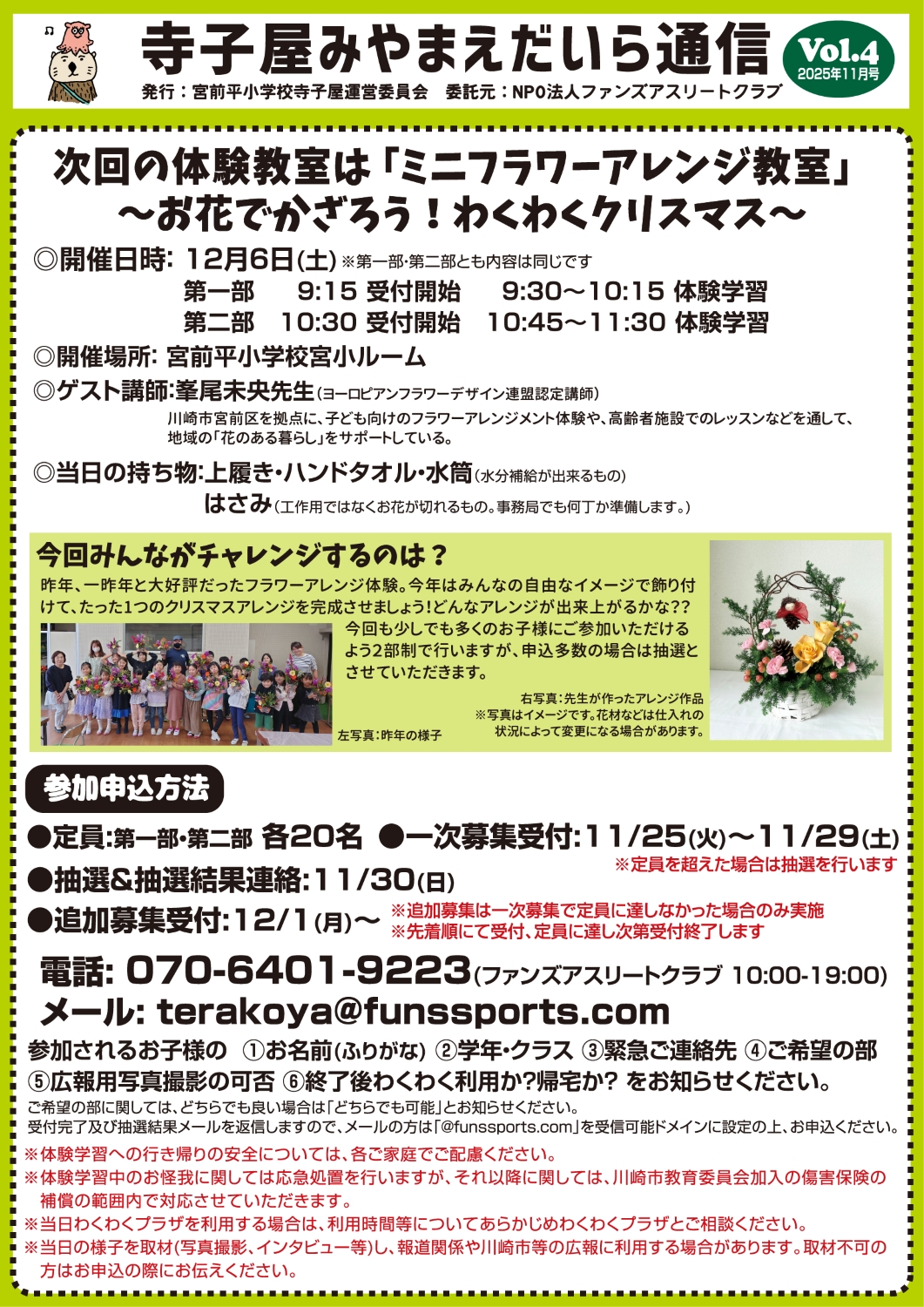 ◎参加申込方法…電話 070-6401-9223 メール terakoya@funssports.com